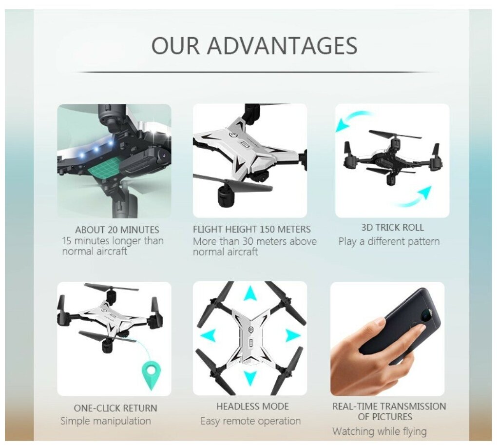 Ниже Вы можете прочитать отзывы на Складной квадрокоптер с камерой 1080P 5.0MP, KY601S Drone Altitude Hold WiFi FPV RC Quadcopter, белый, ознакомится с подробными характеристиками, посмотреть интересные обзоры и фотографии на Складной квадрокоптер с камерой 1080P 5.0MP, KY601S Drone Altitude Hold WiFi FPV RC Quadcopter, белый.