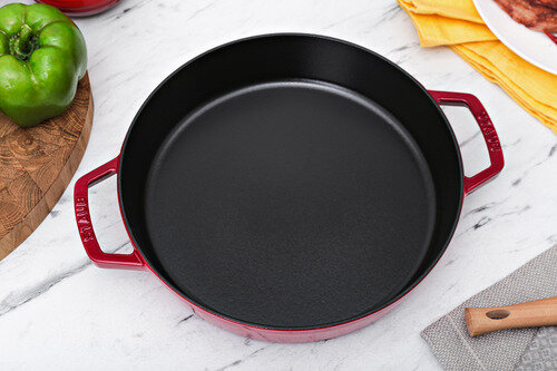 СохранитьСковорода Staub круглая, 26 см, с чугунными ручками, вишневая интересное: