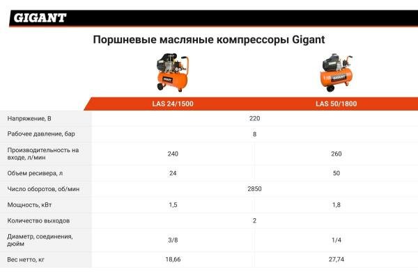 Gigant Компрессор поршневой масляный 50л. LAS 50/1800 интересное: