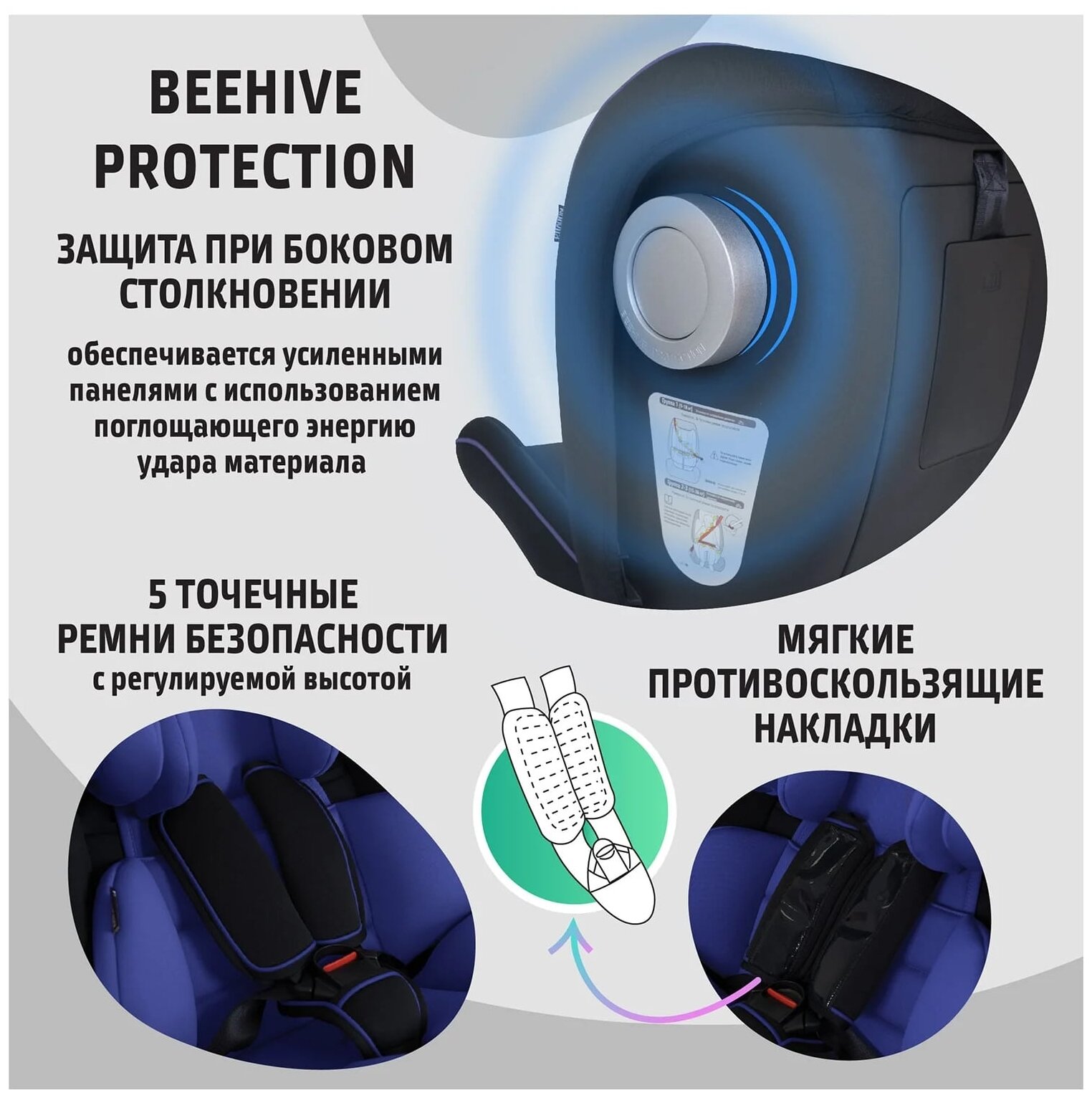 | В комплекте | анатомическая подушка, мягкие накладки на внутренние ремни, съемный чехол |