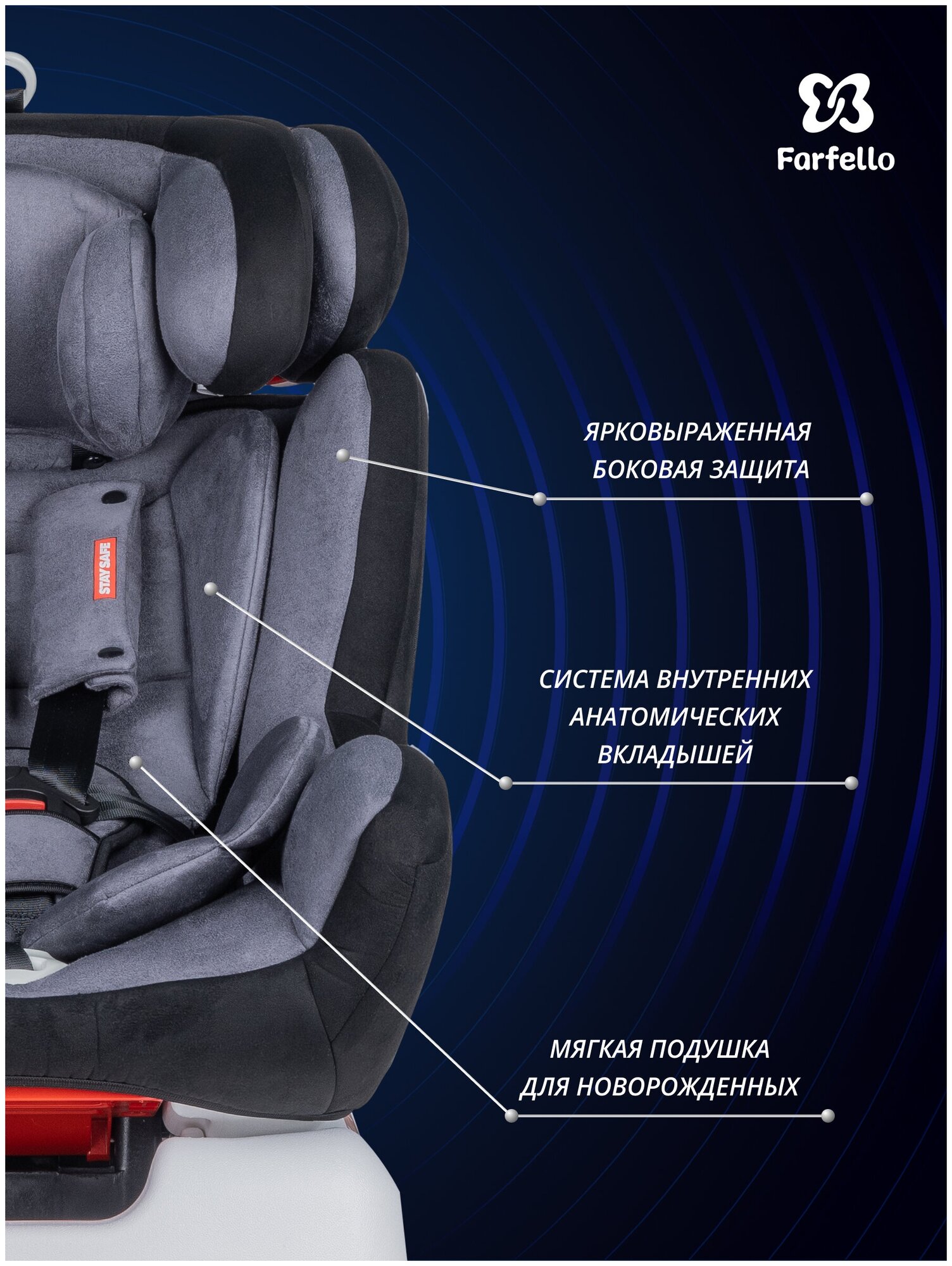 Автокресло детское Farfello Х30 велюр / группа 0+/1/2/3 / возраст от 0 до 12 лет / вес от 0 до 36 кг / цвет серо-черный интересное: