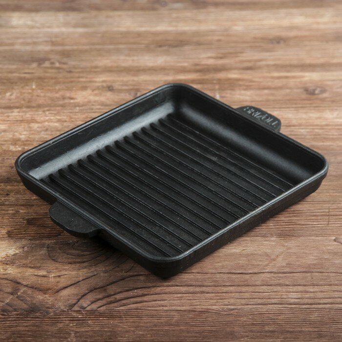 BRIZOLL Сковорода чугунная квадратная гриль "хорека" с подставкой, 180 х 180 х 25 мм, ТМ BRIZOLL интересное: