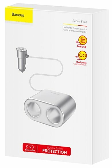 Автомобильное зарядное устройство BASEUS High Efficiency, 2*USB + разветвитель 2*прикуриватель, 3.1A, 100 Вт, серебряный