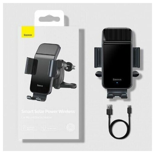Купить Автомобильный держатель с солнечной батарей Baseus Smart Solar Power Wireless Car Mount Electric Holder Black (SUZG000001) (black)