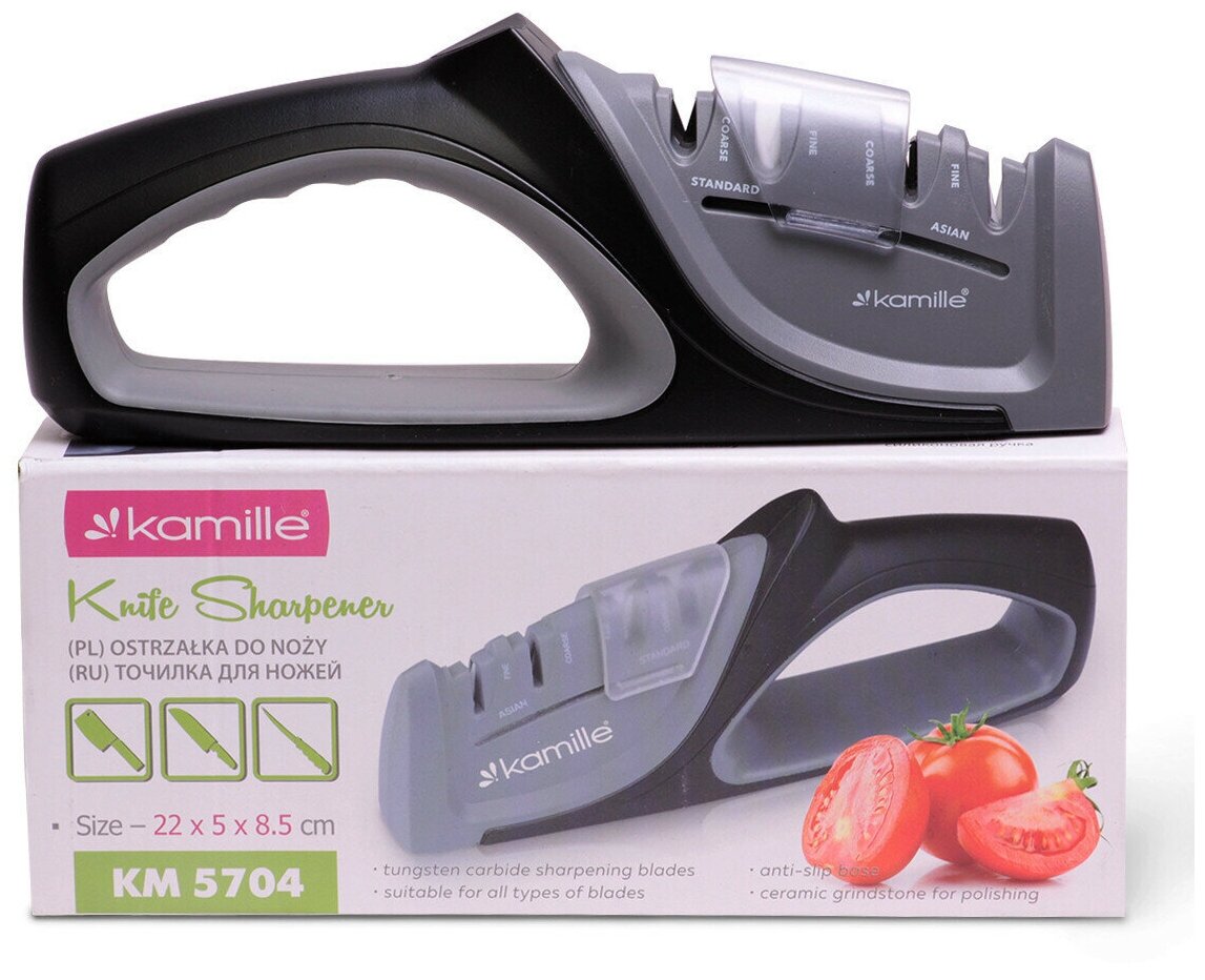 Механическая точилка для ножей Kamille KM-5704, карбид-вольфрам/керамика, черный/серый
