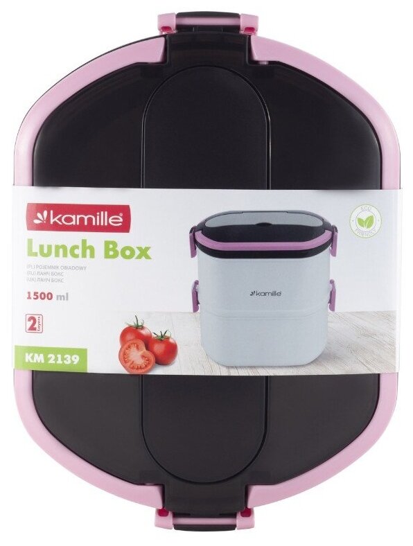 Ланч бокс 1500 мл. Kamille KM 2139 (пластик, нержавеющая сталь) (2139 / розовый)