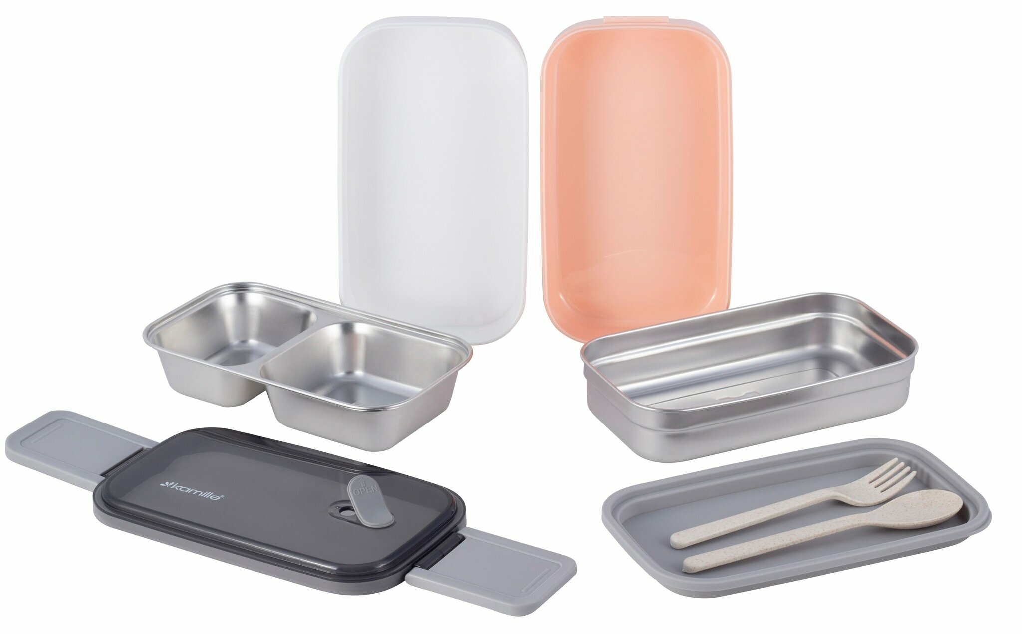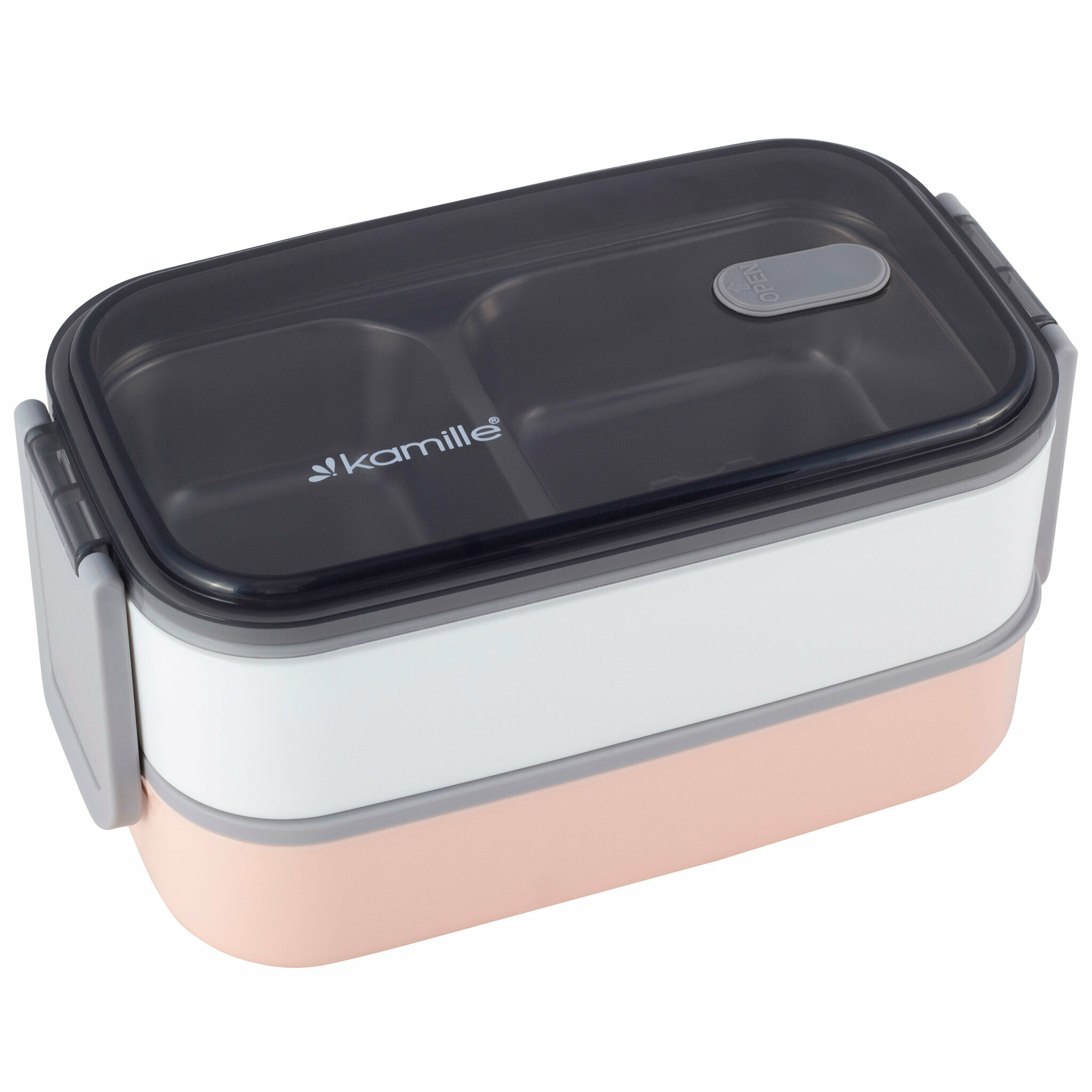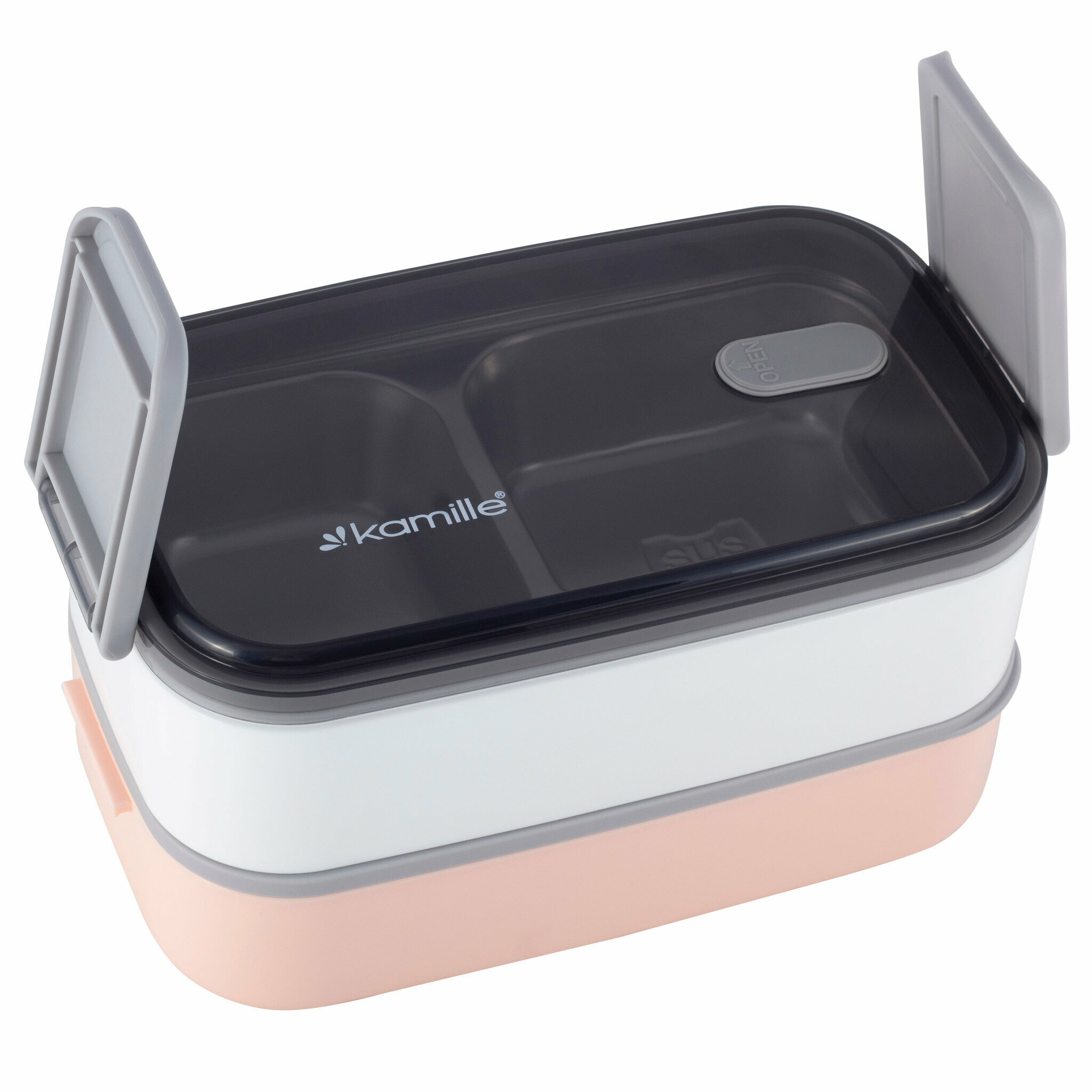 Купить Ланч бокс двойной 1400 мл. Kamille KM 2134 (пластик, нержавеющая сталь) (36 / розовый)