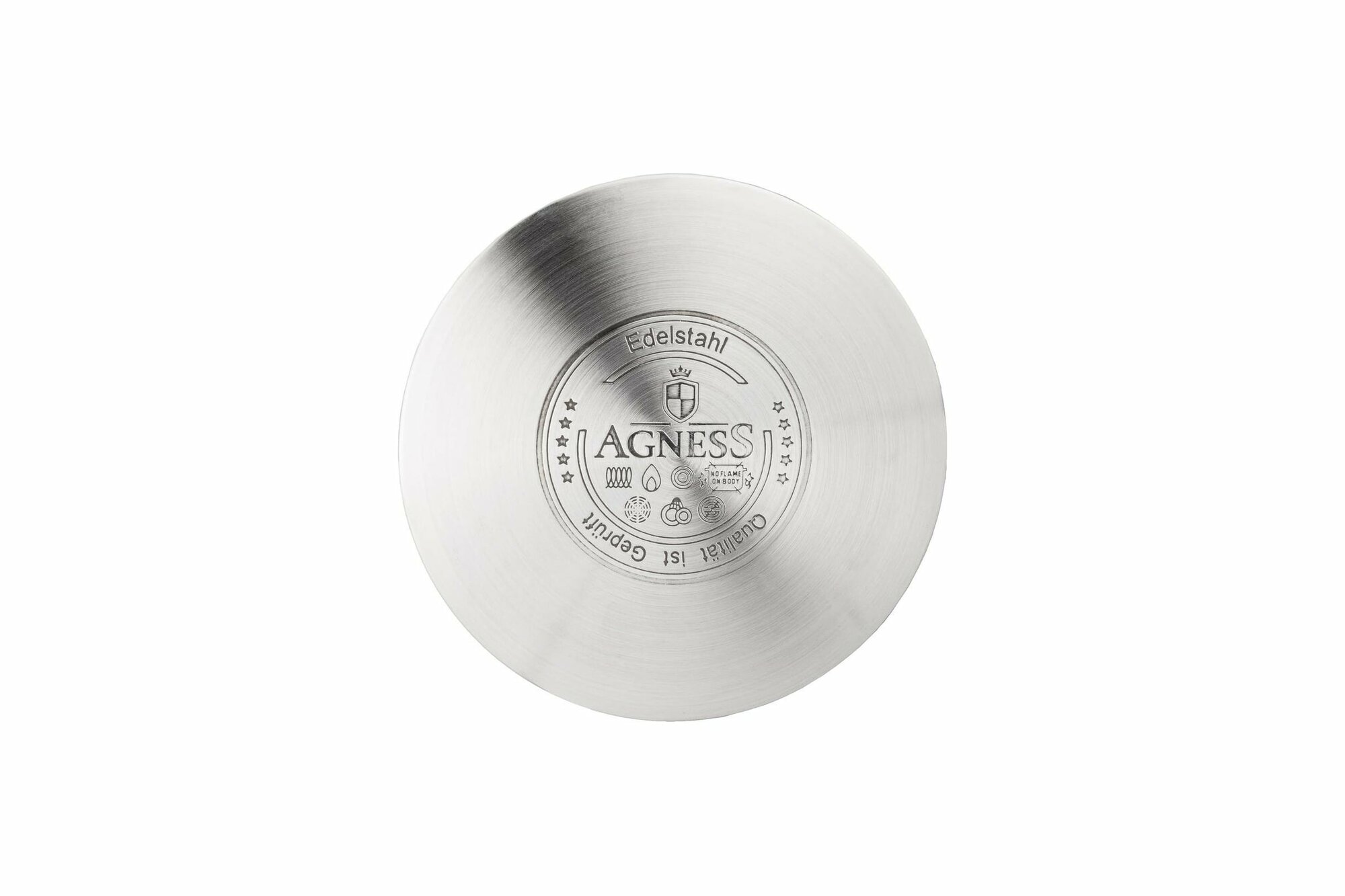 Кастрюля agness со стеклянной крышкой, нерж.сталь, 6,0л 24х13,5см
