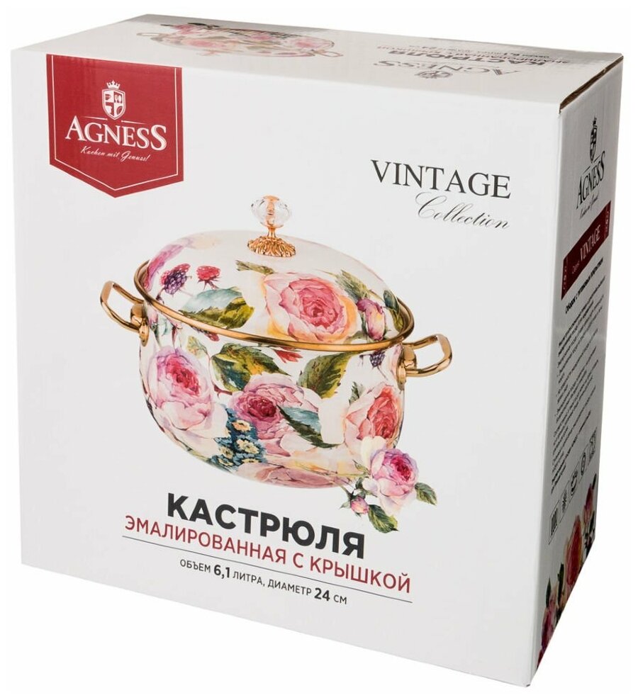 Кастрюля эмалированная 6,1л, диа.24см индукция Agness Royal Garden(950-085) интересное: