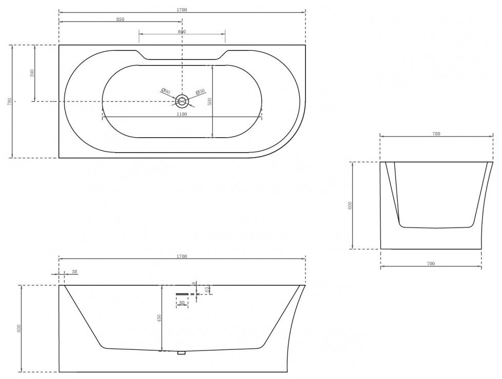 Акриловая ванна Abber AB9335-1.7 L 170x78