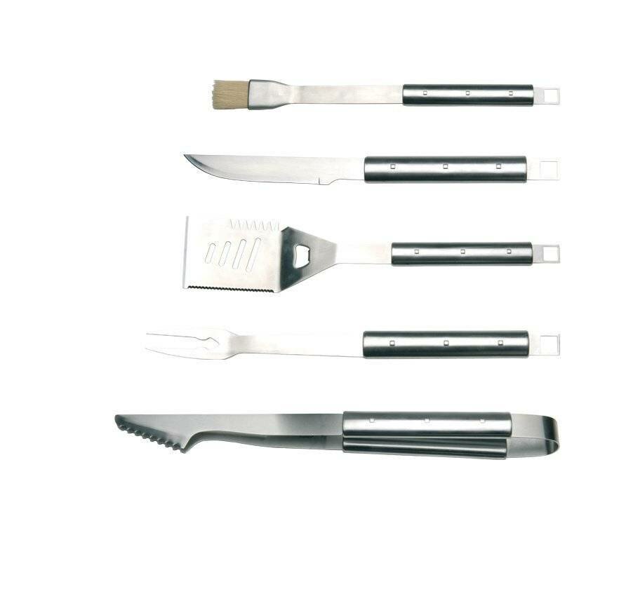 | Длина | вилка для мяса 43.50 см, кисточка 46 см, лопатка 45.50 см, нож для мяса 41 см, щипцы 45.50 см |