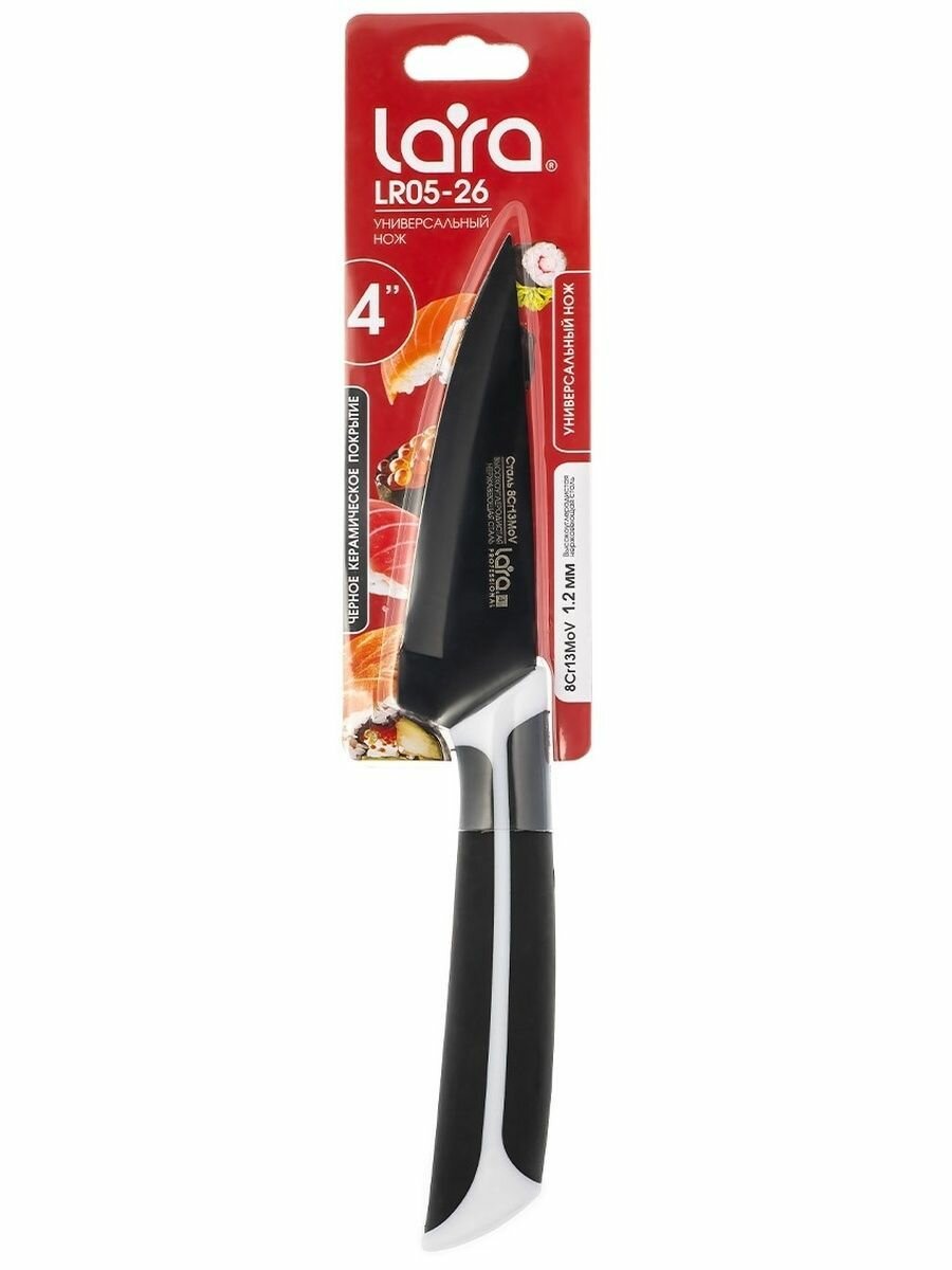 LR05-26 LARA Нож универсальный 10.2см, черное керамическое покрытие Black Ceramic (полный блистер)