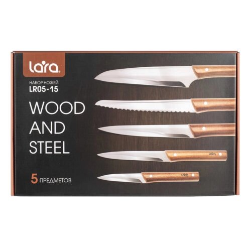 LR05-15 LARA Набор ножей 5 предметов, универсальный/поварской/д.овощей/д.хлеба/д.нарезки 3CR14