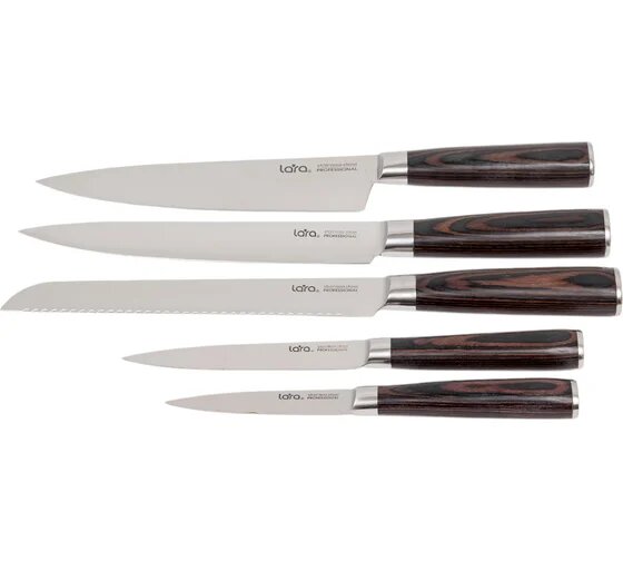 Набор ножей с подставкой LARA LR05-58, 5 предметов в комплекте, нержавеющая сталь, рукоятка Дерево, Сталь