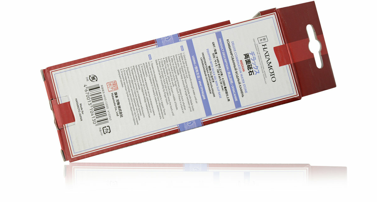 Комбинированный водный точильный камень Hatamoto Japan HT0962, зернистость #600/2000, размер 180×60×28 мм, с подставкой