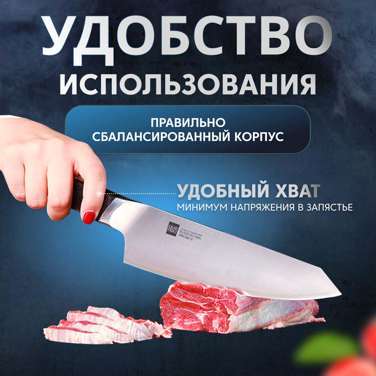 | Типы ножей в наборе | универсальный нож, нож-топорик, разделочный нож, шеф-нож |