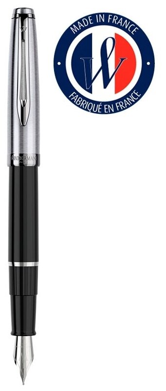 Ручка перьевая Waterman Embleme (2100375) Black CT F перо сталь нержавеющая подар.кор.