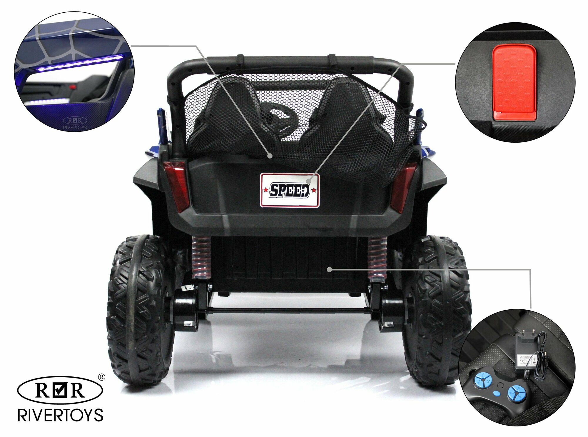 Детский двухместный электромобиль RiverToys T777TT 4WD синий Spider интересное: