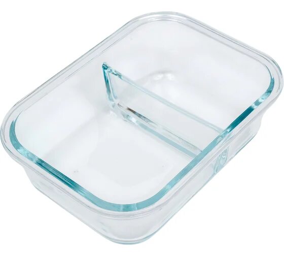 Контейнер двухсекционный на 600 мл из жаропрочного стекла с крышкой с защёлками,