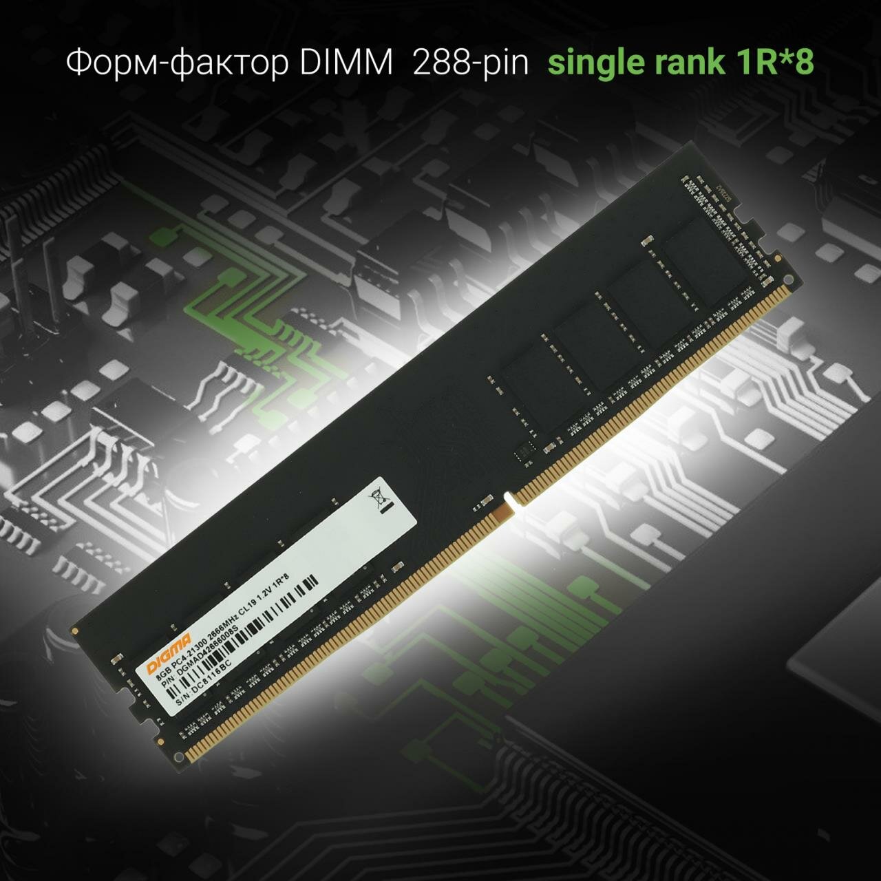 Модуль памяти 8GB Digma DGMAD42666008S DDR4, DIMM, PC4-21300, 2666MHz