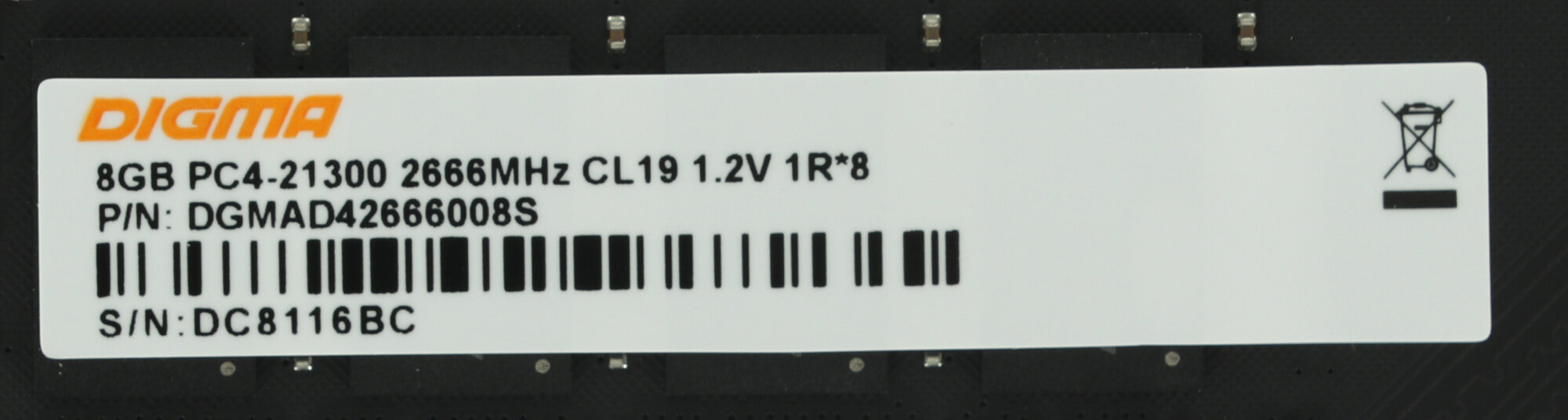 Модуль памяти DDR4 8GB Digma DGMAD42666008S PC4-21300 2666MHz CL19 1.2V RTL