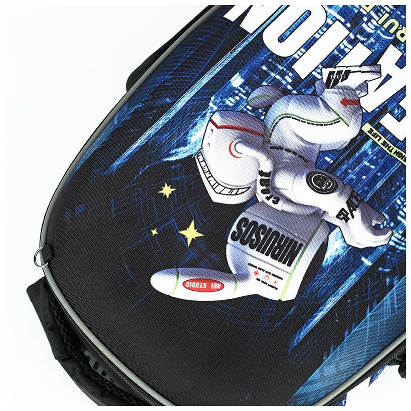 Ранец рюкзак школьный ортопедический для мальчиков Космонавт зайчик синий; рюкзак для начальной школы для мальчика; рюкзак детский для мальчиков