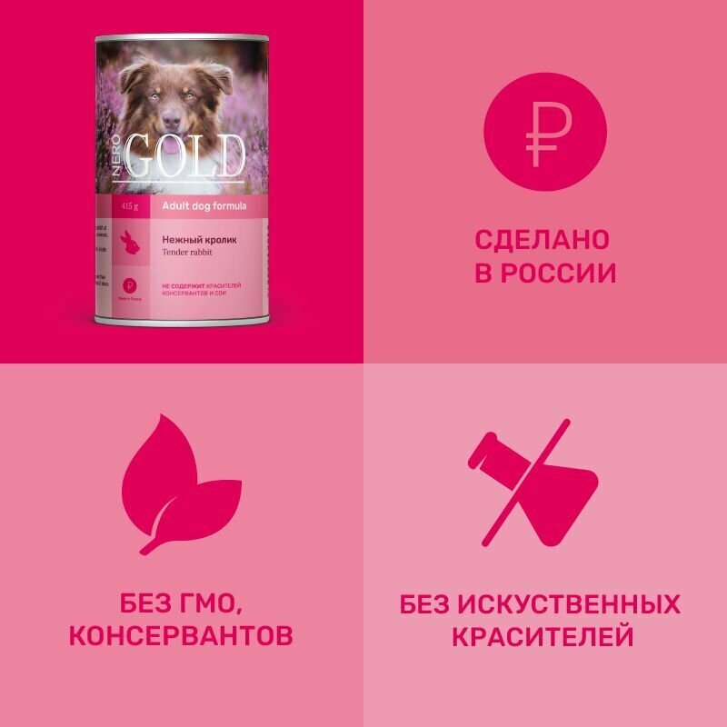 Nero Gold консервы Консервы для собак Нежный кролик 69фо31 53624 0,415 кг 53624 (12 шт)