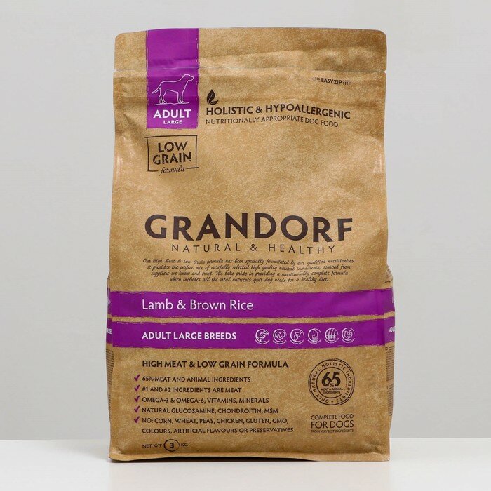Купить Grandorf Сухой корм Grandorf для собак крупных пород, ягненок/рис, низкозерновой, 3 кг