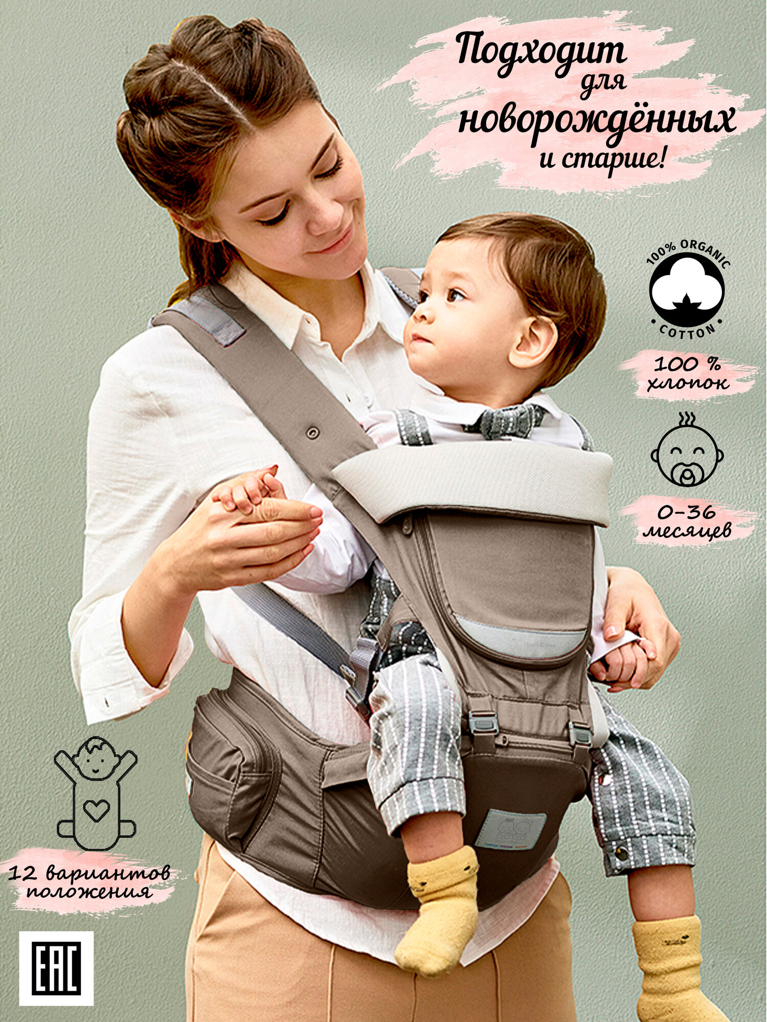Купить Mom's Babies / Хипсит - трансформер / кенгуру 3в1 / эргорюкзак для новорождённых Mom's Babies Luxury