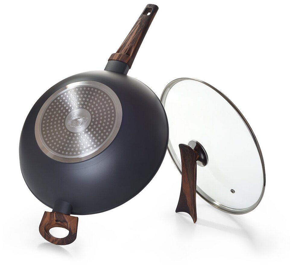 14957 FISSMAN Сковорода-вок CAPELLA 30x8,5см / 4,3л со стеклянной крышкой, ручка с двойной фиксацией (алюминий с антипригарным покрытием TiPro) Ручки-бакелит с покрытием «софт тач»; Крышка-стекло; Индукция