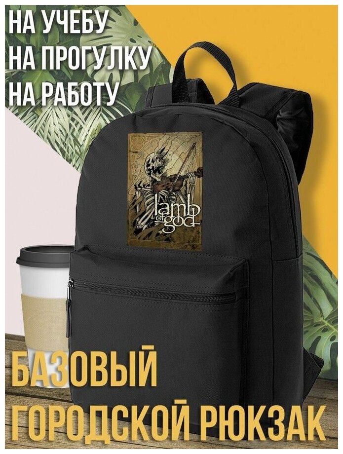 Черный школьный рюкзак с DTF печатью музыка агнец божий Lamb of God, Дэткор, авангард - 120 интересное: