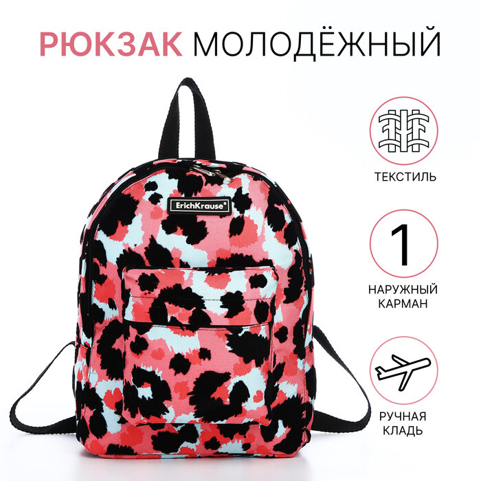 Рюкзак молод, 22*11*25, отд на молнии, н/карман, розовый/ягуар ErichKrause 7855364 .