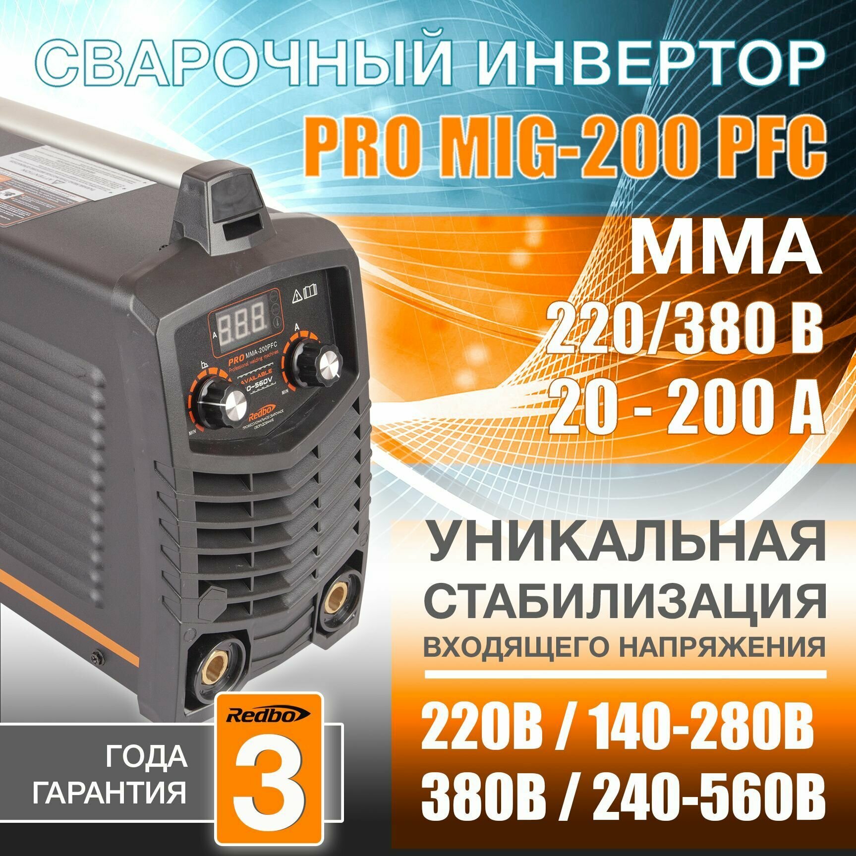 Сварочный аппарат Redbo PRO 200PFC /220В (140В до 280В) / 380В (240В до 560В)/