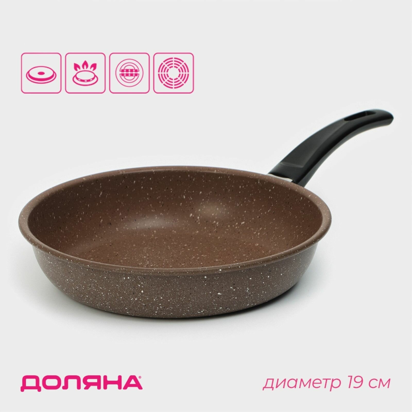 Сковорода Rock, d=19 см, пластиковая ручка, антипригарное покрытие, цвет коричневый интересное: