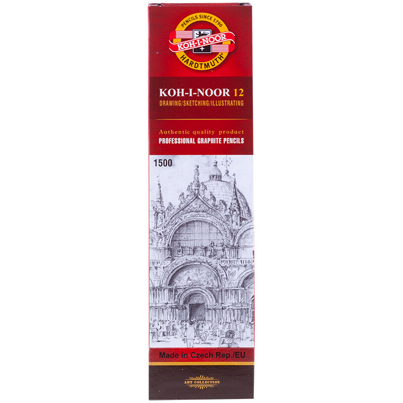 12 шт. Карандаш чернографитный KOH-I-NOOR 1500, 1 шт., 7B, корпус желтый, заточенный, 150007B01170RU
