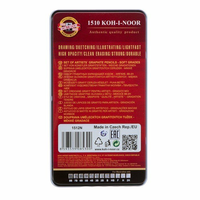Ниже Вы можете прочитать отзывы на Koh-I-Noor Набор карандашей чернографитных разной твердости 12 штук Koh-I-Noor 1512N ART, 8B-2H, в металлическом пенале, ознакомится с подробными характеристиками, посмотреть интересные обзоры и фотографии на Koh-I-Noor Набор карандашей чернографитных разной твердости 12 штук Koh-I-Noor 1512N ART, 8B-2H, в металлическом пенале.