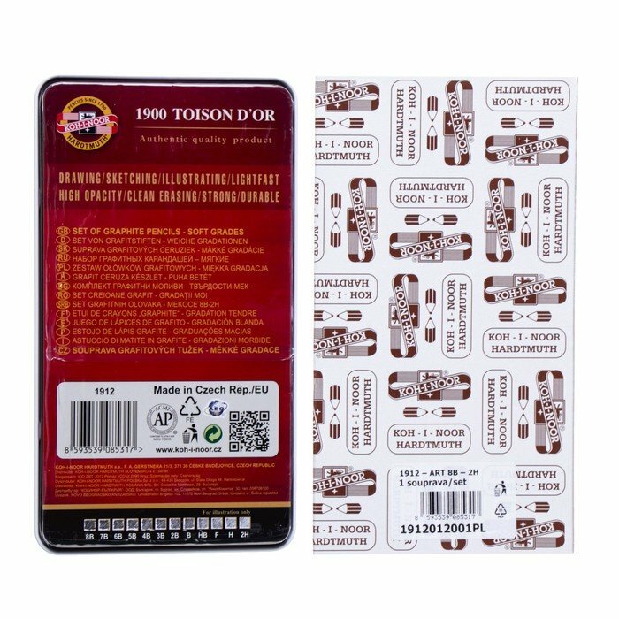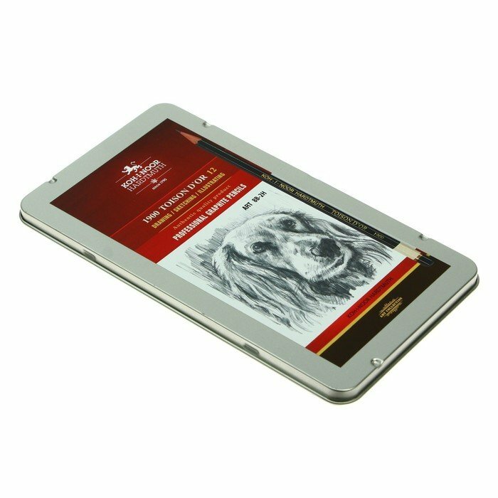 Koh-I-Noor Набор карандашей чернографитных разной твердости 12 штук Koh-i-Noor 1912, 8B-2H, утолщённые, в металлическом пенале интересное: