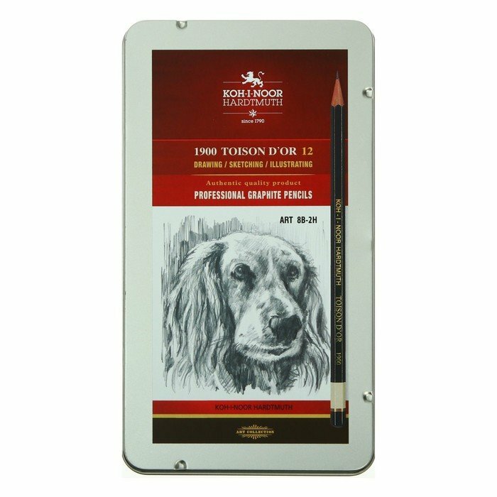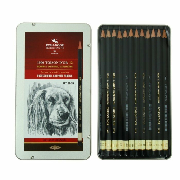 Купить Koh-I-Noor Набор карандашей чернографитных разной твердости 12 штук Koh-i-Noor 1912, 8B-2H, утолщённые, в металлическом пенале