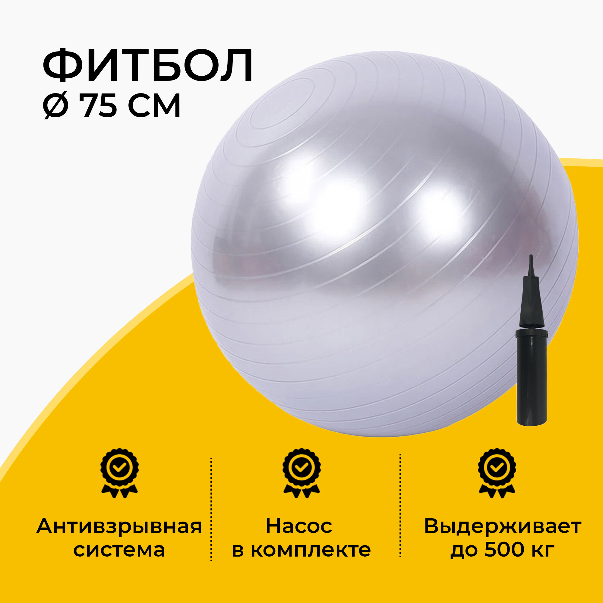 Фитбол, гимнастический мяч, серебряный, 75 см интересное: