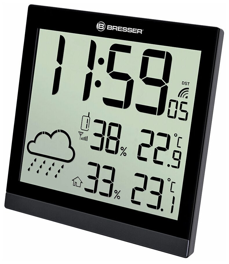 Метеостанция (настенные часы) Bresser TemeoTrend JC LCD с радиоуправлением, чёрная