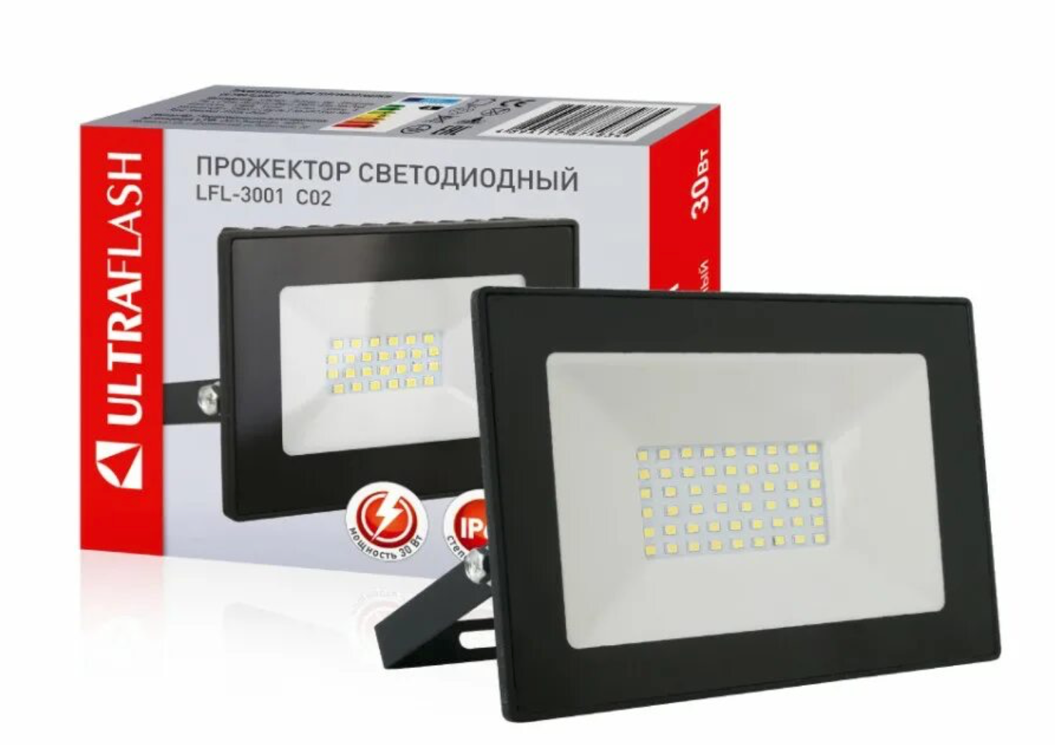 Ultraflash LFL-3001 C02 черный (LED SMD прожектор, 30 Вт, 230В, 6500К) (1 шт.)