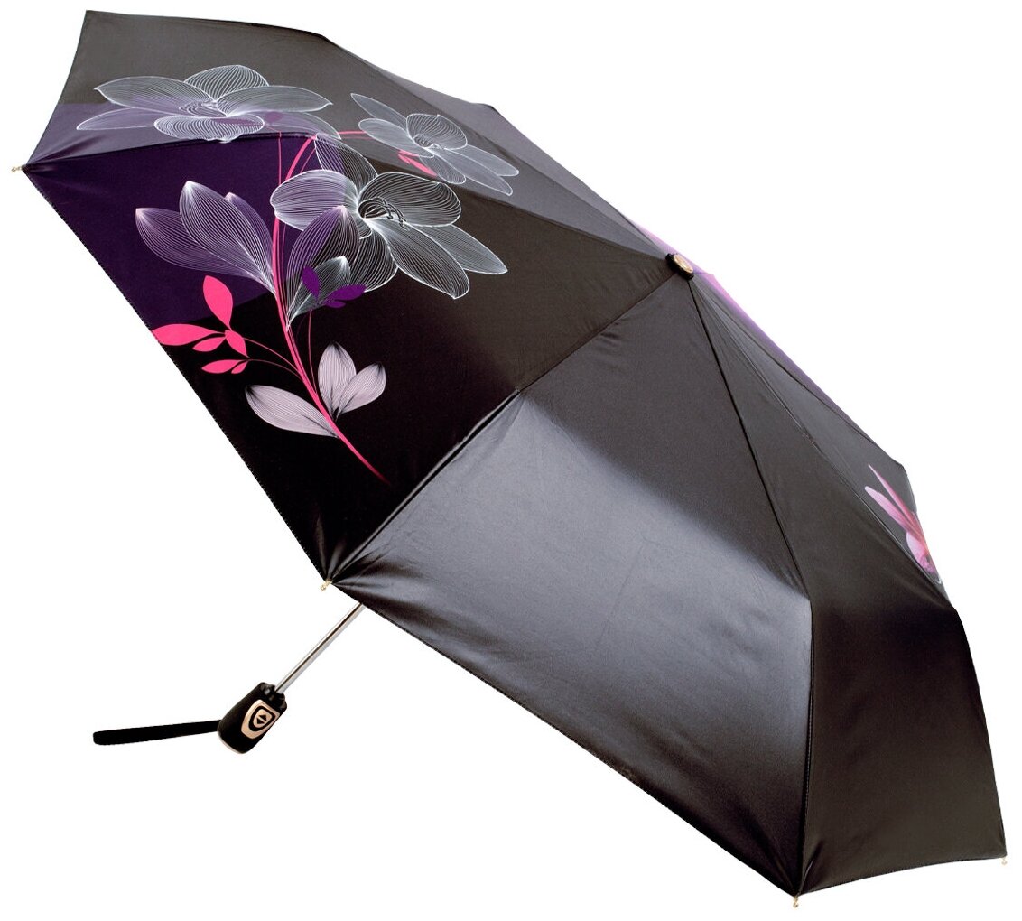 Зонт женский ТРИ слона, 3 сложения автомат 3879-B-05, черный, фиолетовый интересное: