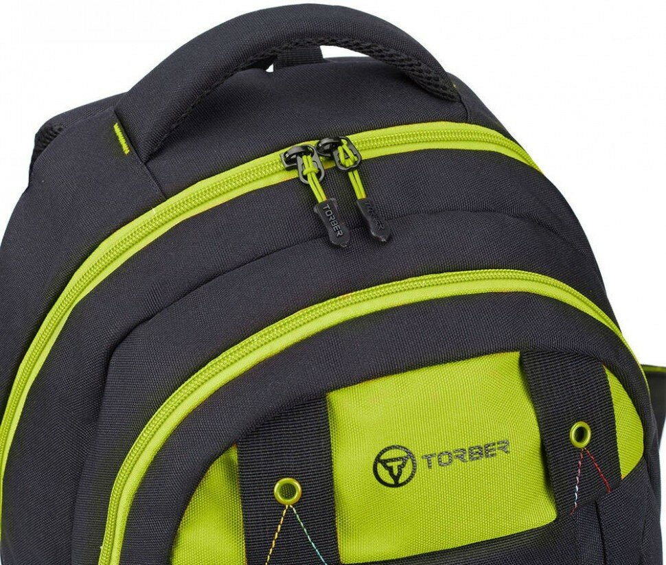 Рюкзак молодежный 45 х 32 х 16 см, эргономичная спинка, + мешок, TORBER CLASS X, чёрный/зелёный T5220-22-BLK-GRN-M