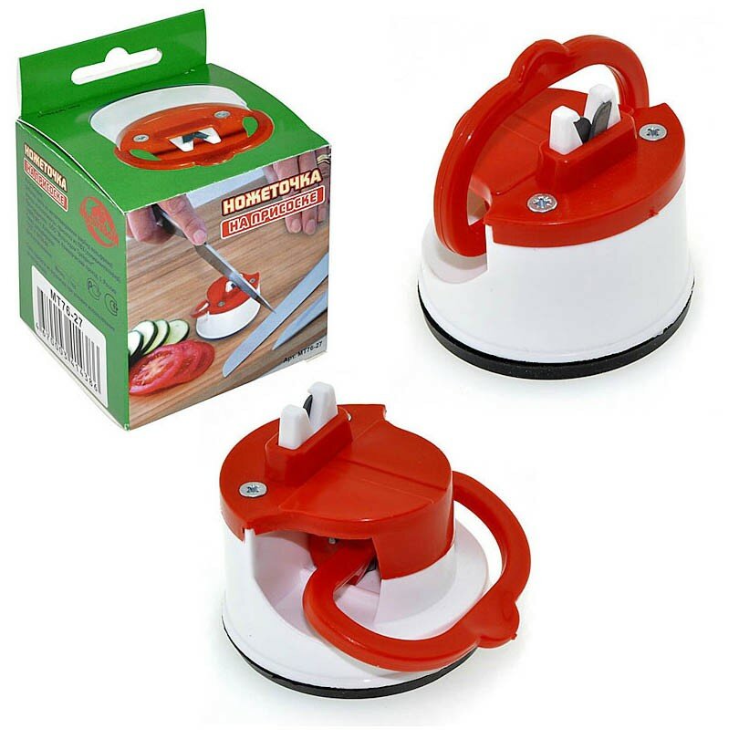 Точилка для ножей Мультидом механическая ручная на присоске с пластмассовой ручкой металл 8.5х6х6см