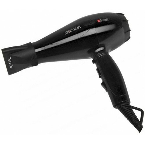Фен DEWAL SPECTRUM COMPAСT, черный, вес 600гр, 2100Вт, ионизация, 2 нас, провод 3м