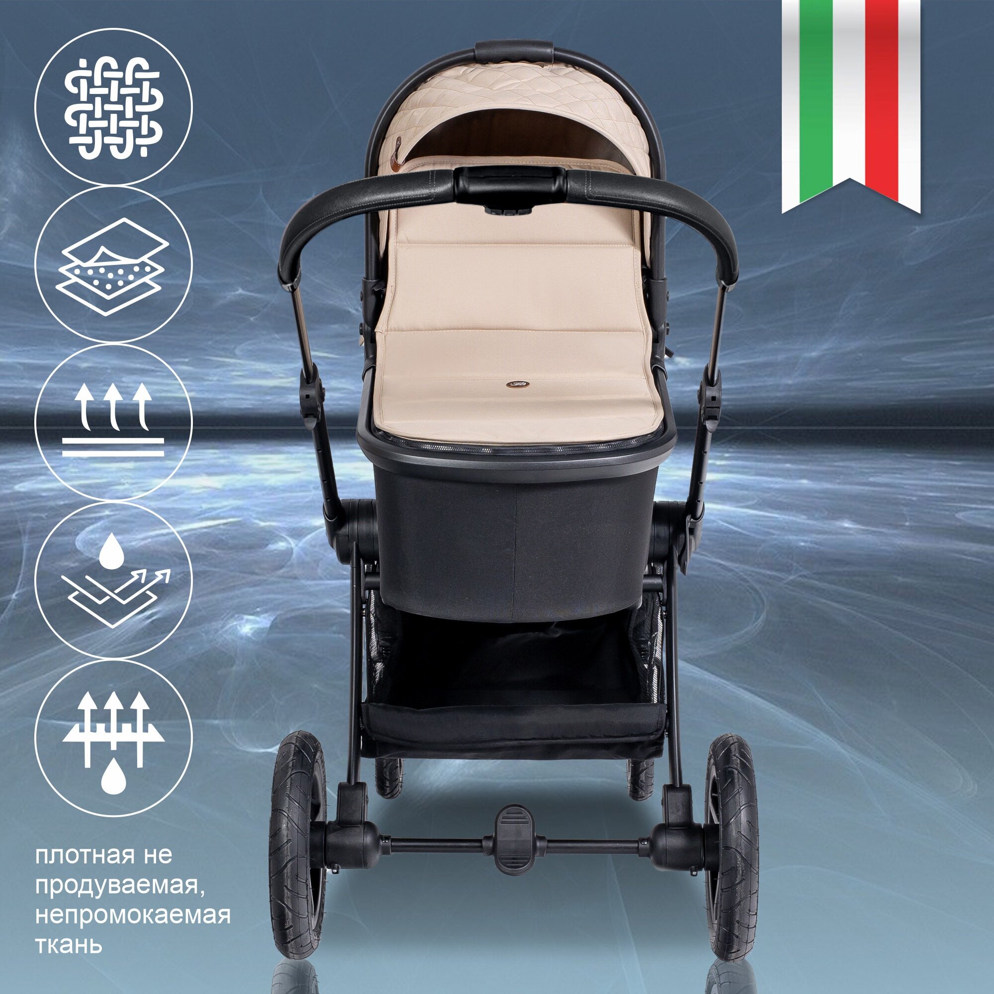 | Аксессуары в комплекте | матрас, сумка, бампер, накидка на ноги, дождевик, антимоскитная сетка, муфта для рук, солнцезащитный козырек |