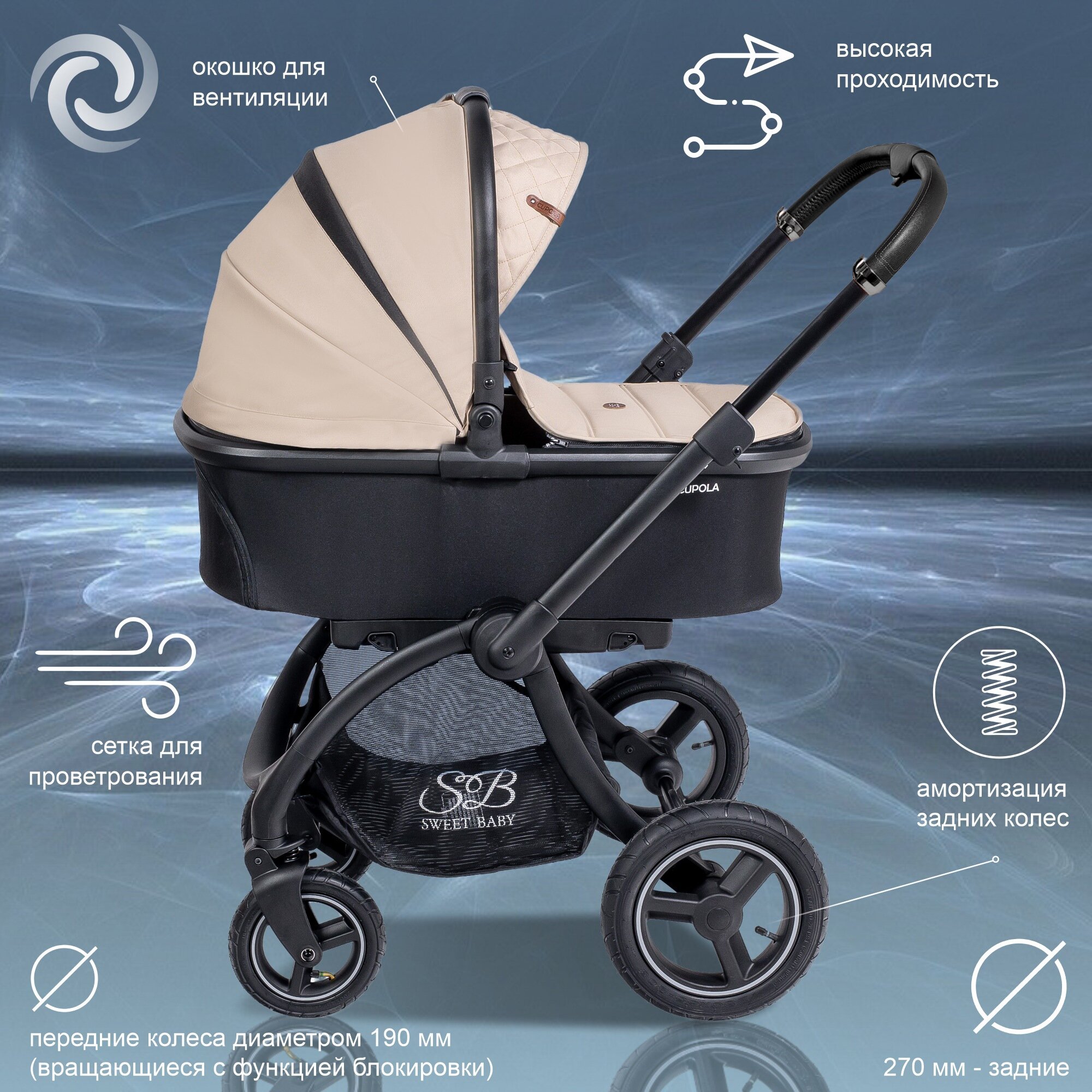 СохранитьКоляска Sweet Baby 2в1 Cupola Beige Neo интересное: