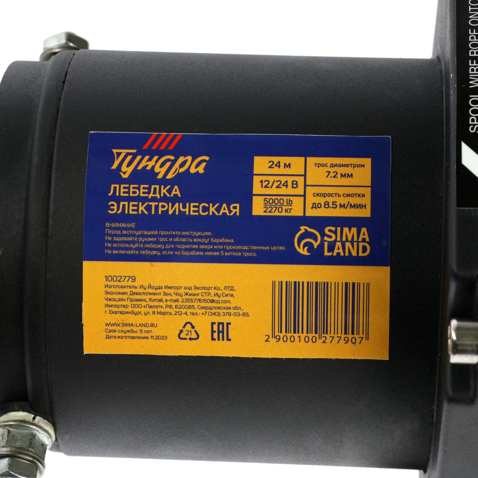 Лебедка электрическая тундра, 12/24V, 5000 lb (2.3 т), 2.7 л.с., до 8.5 м/мин, 7.2 мм х 24 м интересное:
