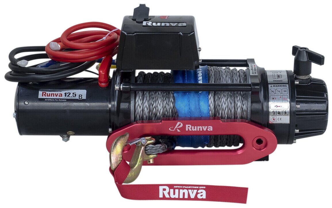 Лебёдка автомобильная электрическая 12V Runva 12500 lbs 5670 кг влагозащищенная, синтетический трос