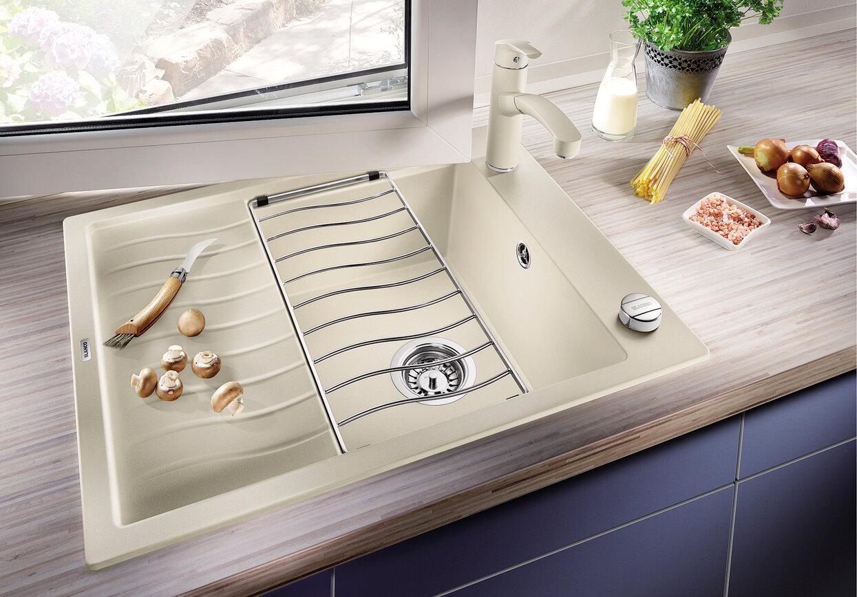 Врезная кухонная мойка 50 см, Blanco Elon 45S с клапаном-автоматом, белый